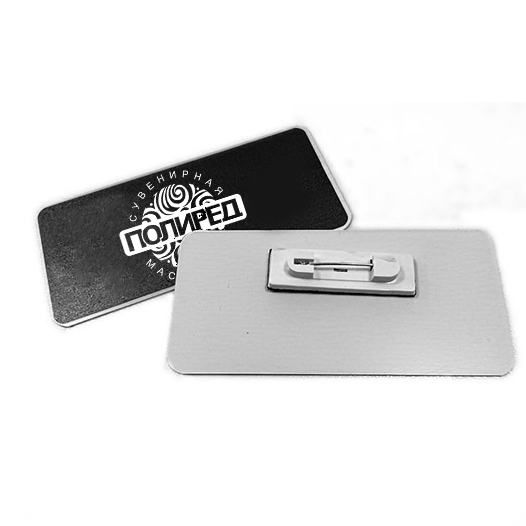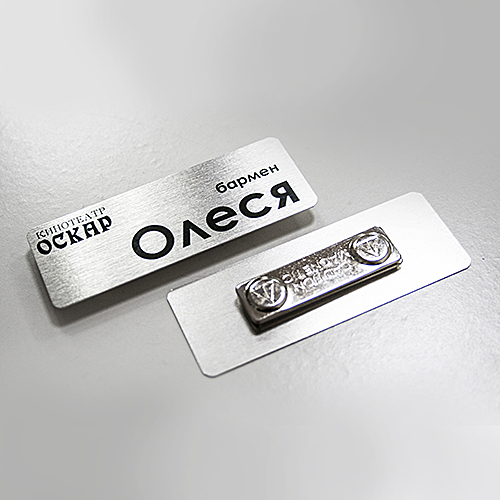 Бейдж алюминиевый 70х40мм на булавке