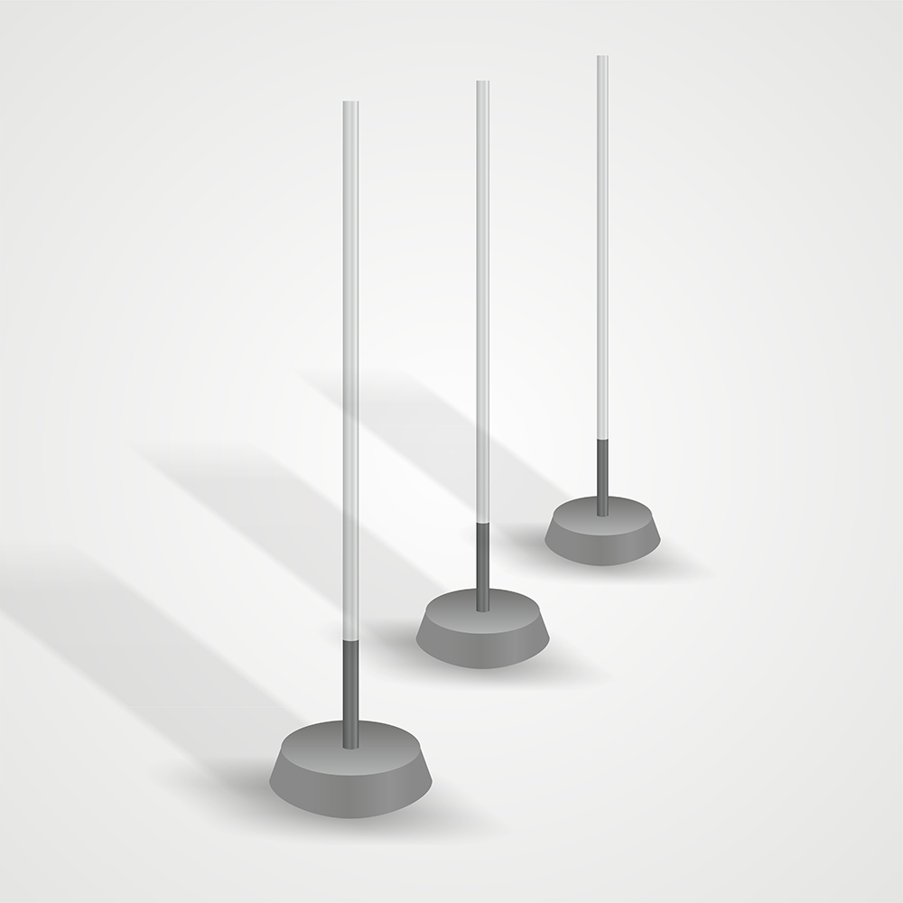 Основание из бетона, с хромированным металлическим флагштоком длиной 300 см и диаметром 3 см.