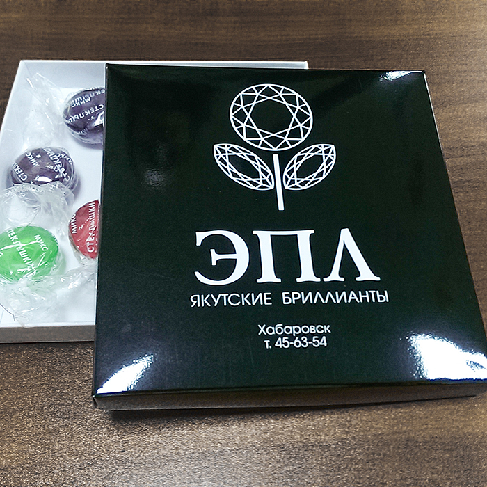 Картонная коробочка с полноцветной печатью, 10х10х10см и размером 8Х8Х8 С окошком