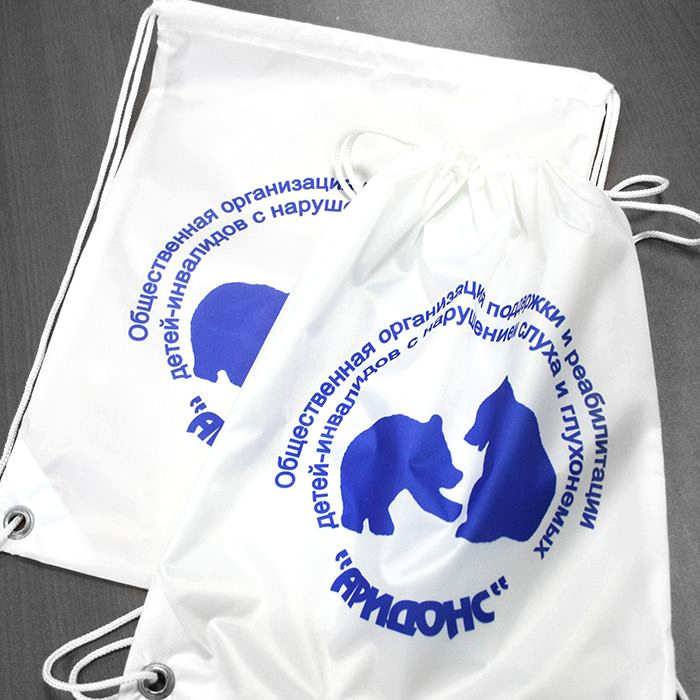 Легкий рюкзак с лямками из шнура, размер 30х40см. Ткань оксфорд. Печать цветная формата А4 по центру изделия, вокруг любой цвет ткани