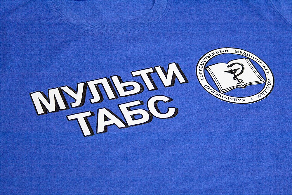 100 белых футболок, печать на груди 10х10 см в 1 цвет, на спине 40х10 2 цвета.