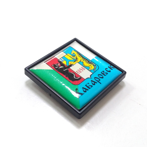 Значок квадратный пластиковый под объемной полимерной линзой